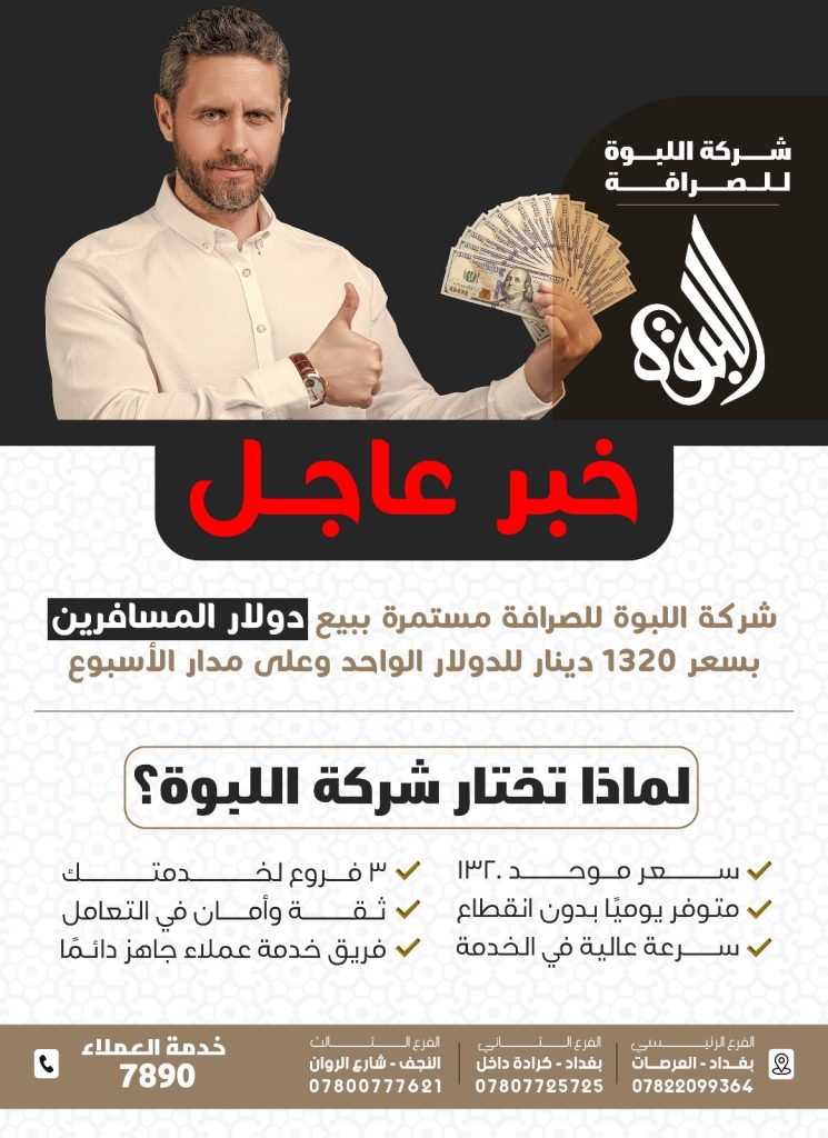 يتوفر لدينا حوالات داخلية لكافة انحاء العراق